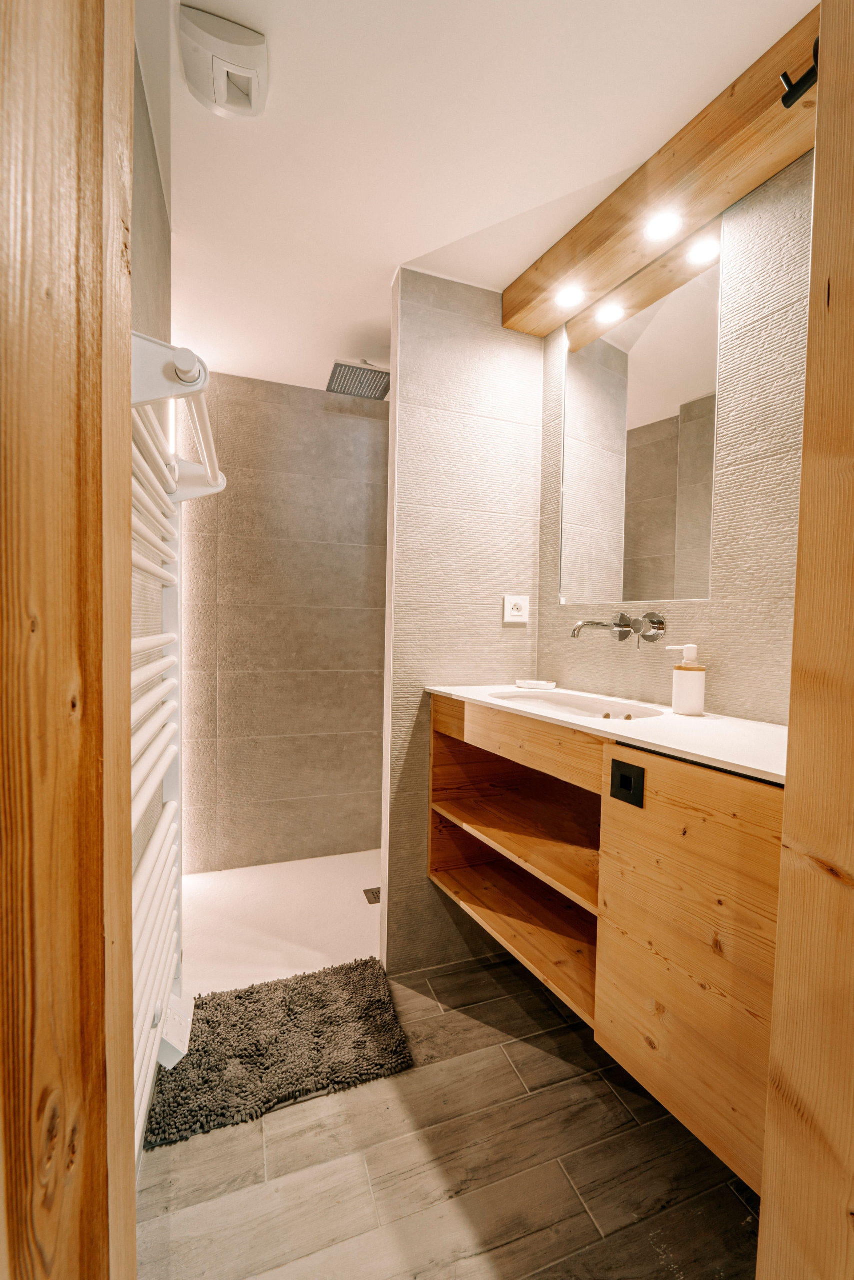 Au pied des pistes de Chantemerle, à Serre Chevalier, l’équipe des Ateliers Raphaël a réalisé une rénovation complète de 4 appartements répartis sur deux niveaux : deux studios et deux T2.